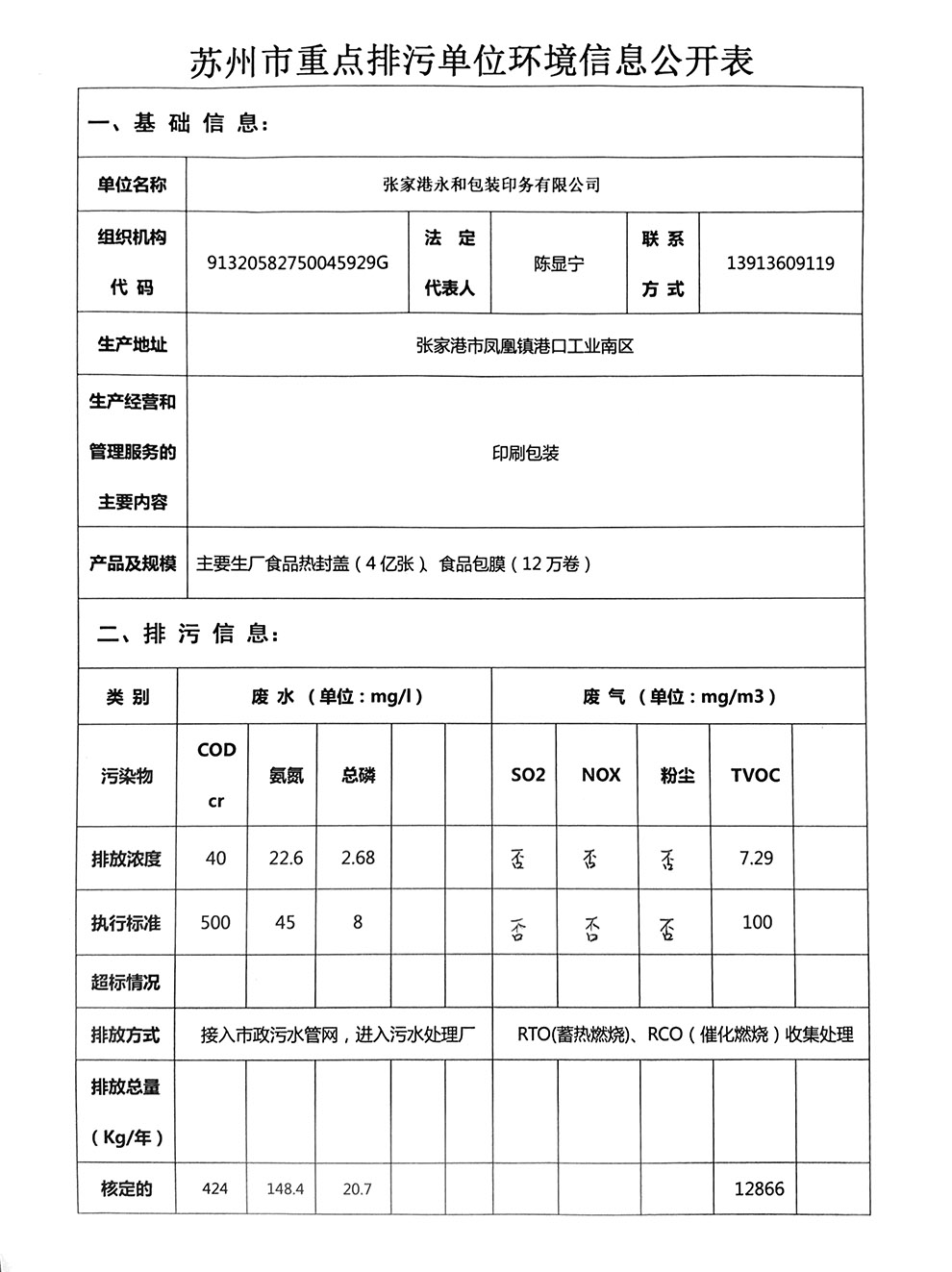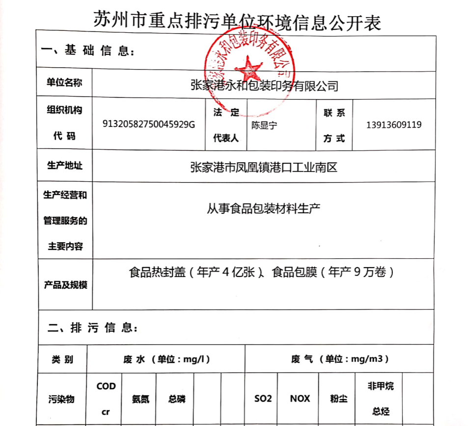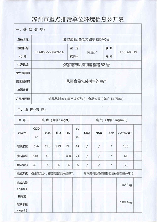 蘇州市重點排污單位環(huán)境信息公開表(永和包裝)